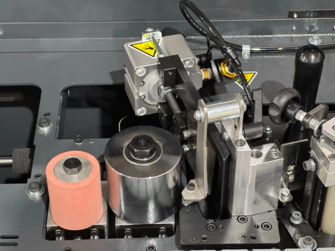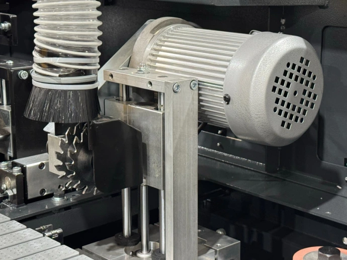 Okleiniarka REMA eXpert ze wstępnym frezowaniem, dwiema cyklinami (cyklina płaska, cyklina promieniowa)